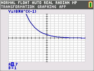 For the first part of this activity, students explore geometric sequences graphically by varying the value of A, the common ratio. Pressing the right or left arrows will change the value of A and updates the graph each time.